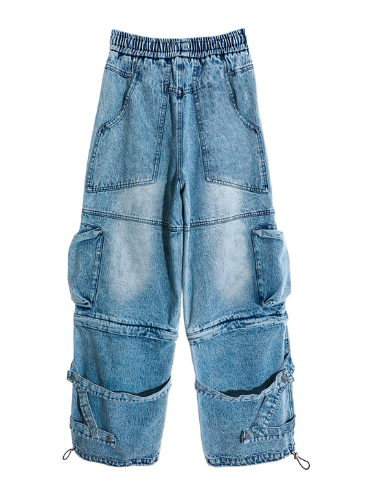 PANTALÓN VAQUERO COVERTIBLE ANCHO CARGO - AZUL - MOD WAVE MOVEMENT | MW071051404